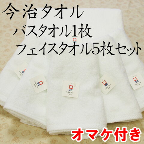 【オマケ付き(簡易包装)】今治タオル 白バスタオル 1枚 白フェイスタオル 5枚セット 34cm×90cm 60cm×120cm 日本製 綿100% 今治タオルセット pt1 ..