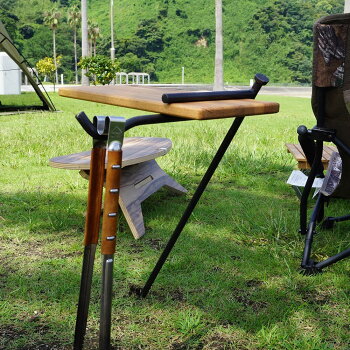 (キャンプ用品)CAMPOOPARTS アイアン×タモ材のサイドテーブル「打ち込みタイプ」フック付 <その他アウトドア返礼品> 焚き火台 ハンガー・フック 暖炉 調理器具・食器 テーブル・スタンド タープ